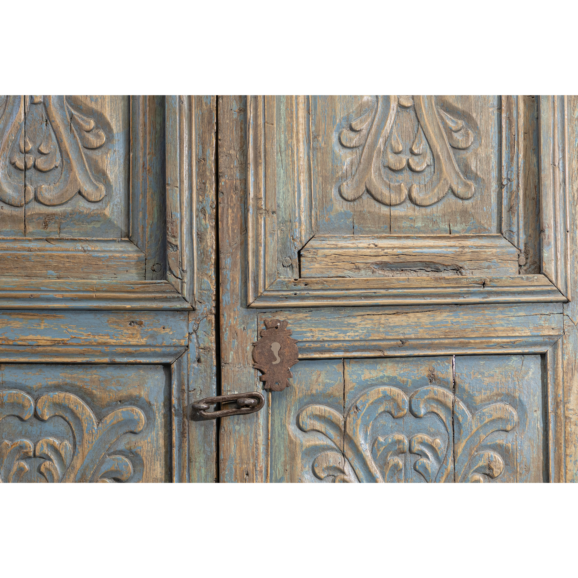 This door, as well as its frames and windows, is made of an unknown type of wood. Part of Its original paint is still conserved. They likely comes from the mid-19th Century and were rescued from a Colonial-era casona in Arequipa that had been destroyed by a massive earthquake in 2001.