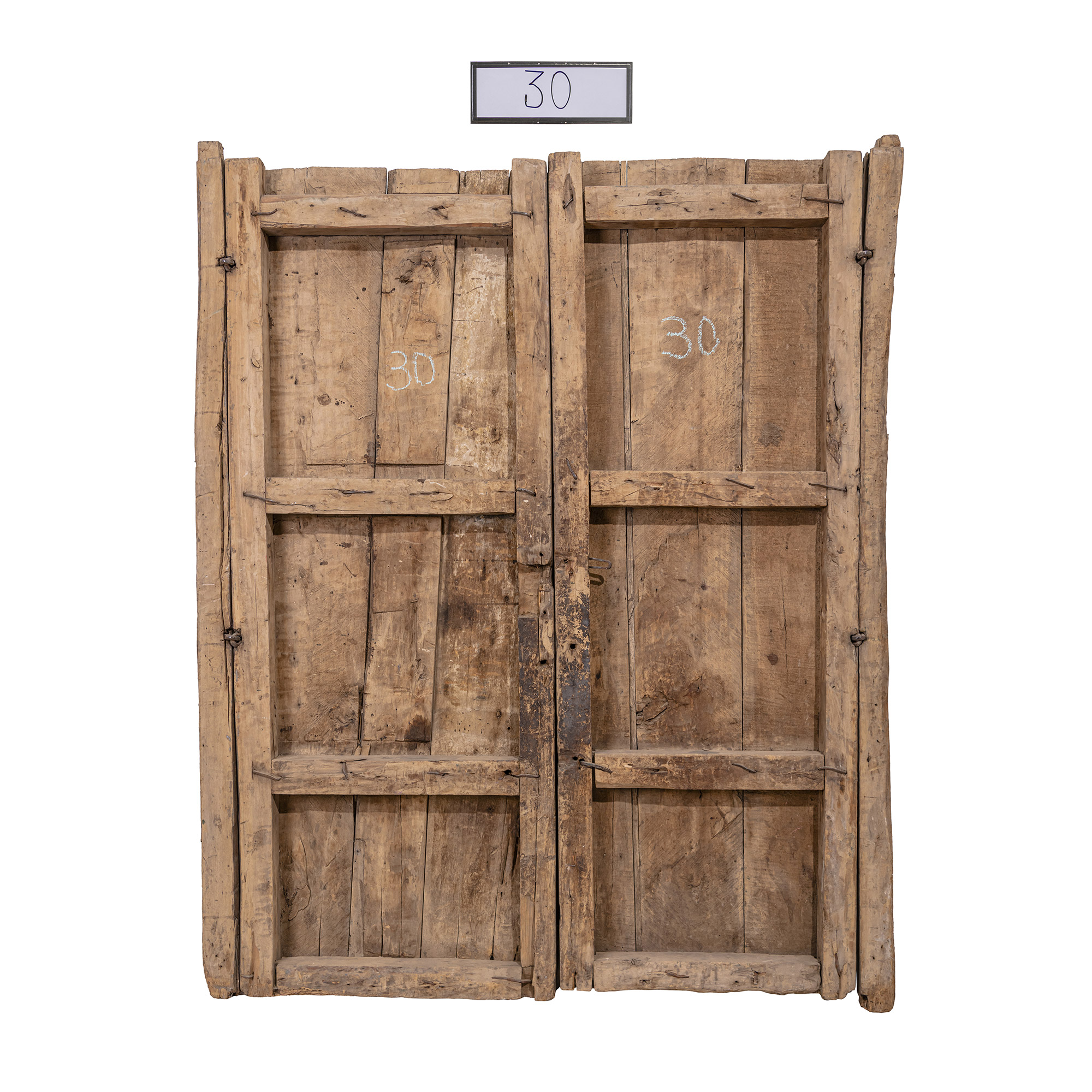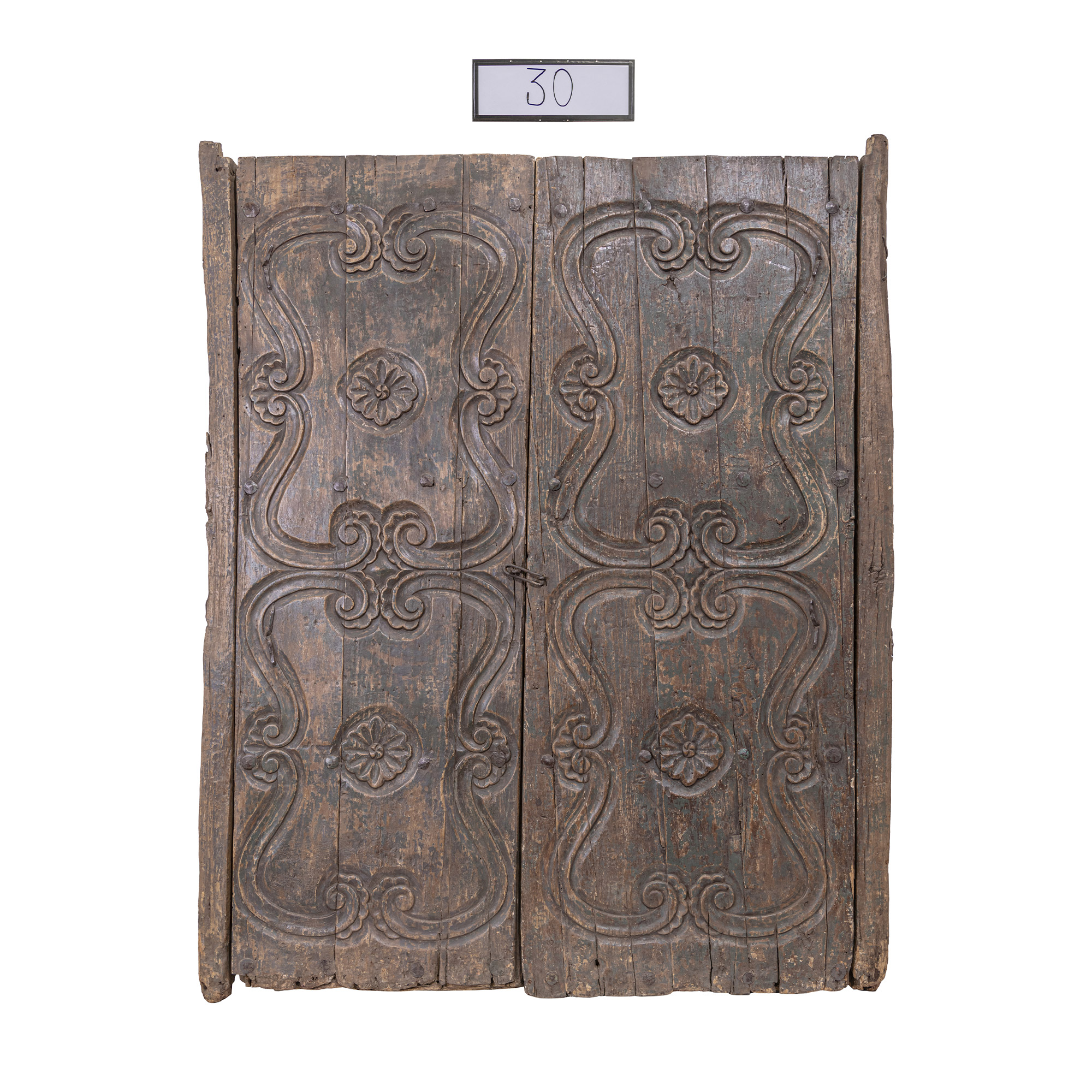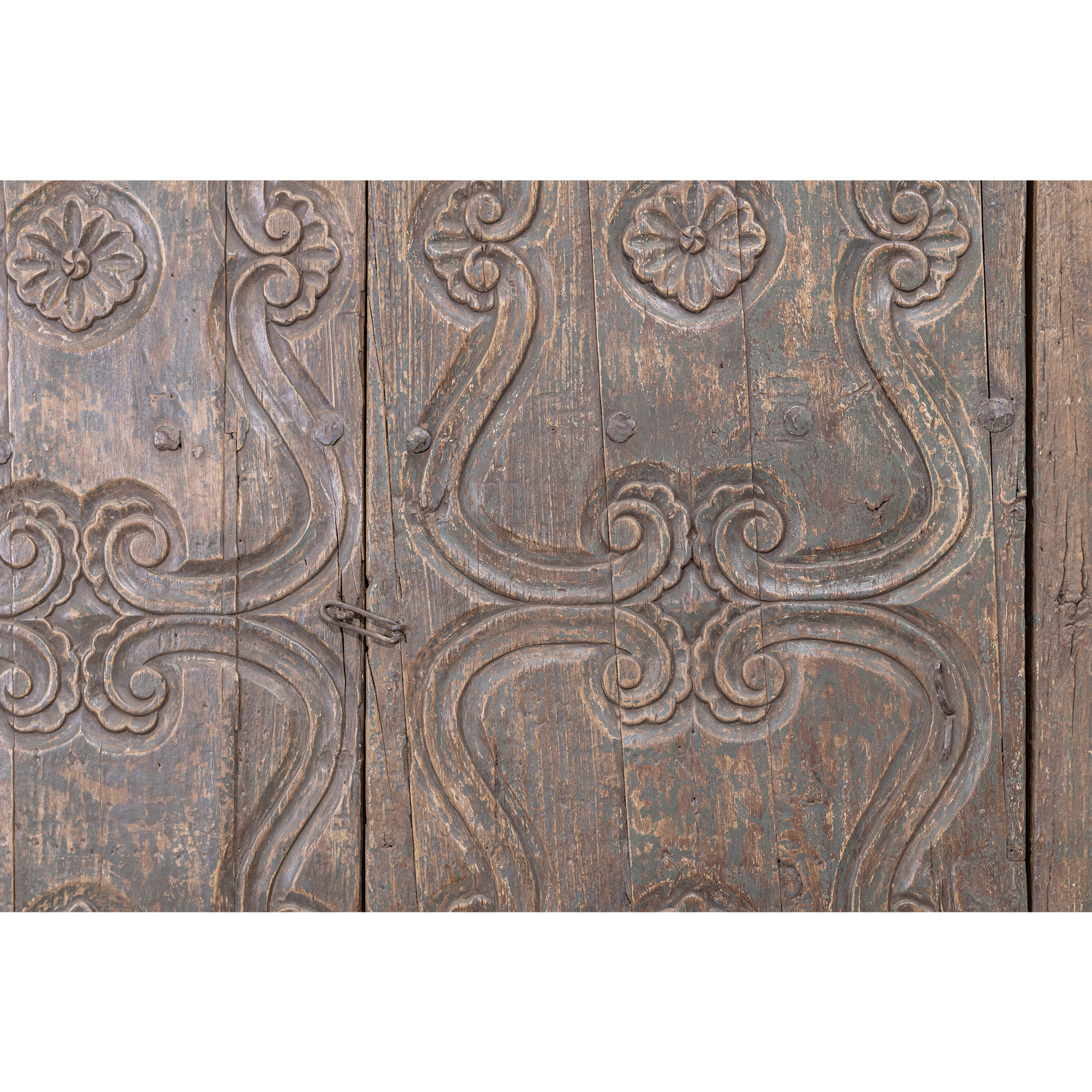 This door is made of pine brought from the U.S. state of Oregon. It dates back to approximately the end of the 19th Century, and was salvaged from a Republican-era casona in Arequipa that had been destroyed by an earthquake in 2001.