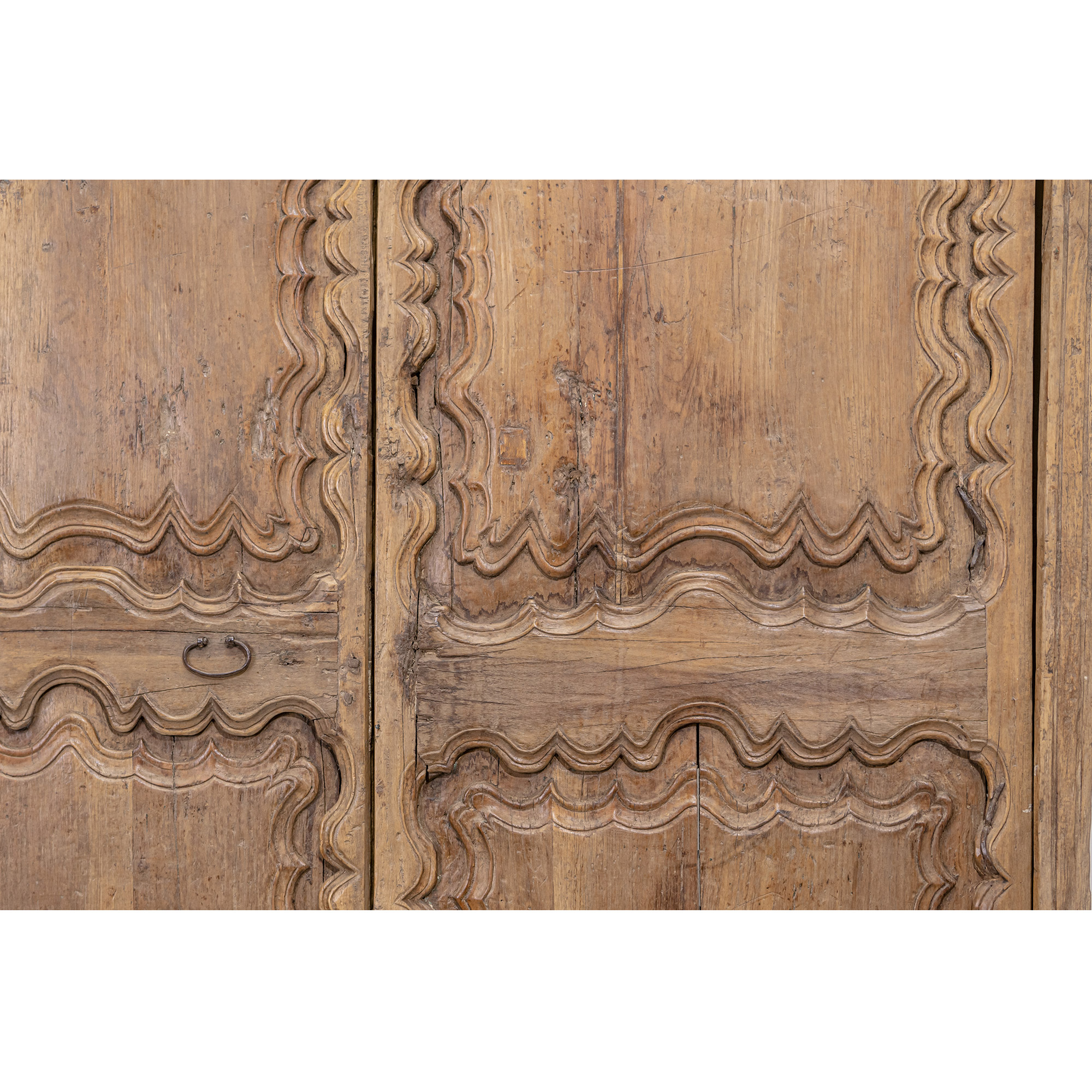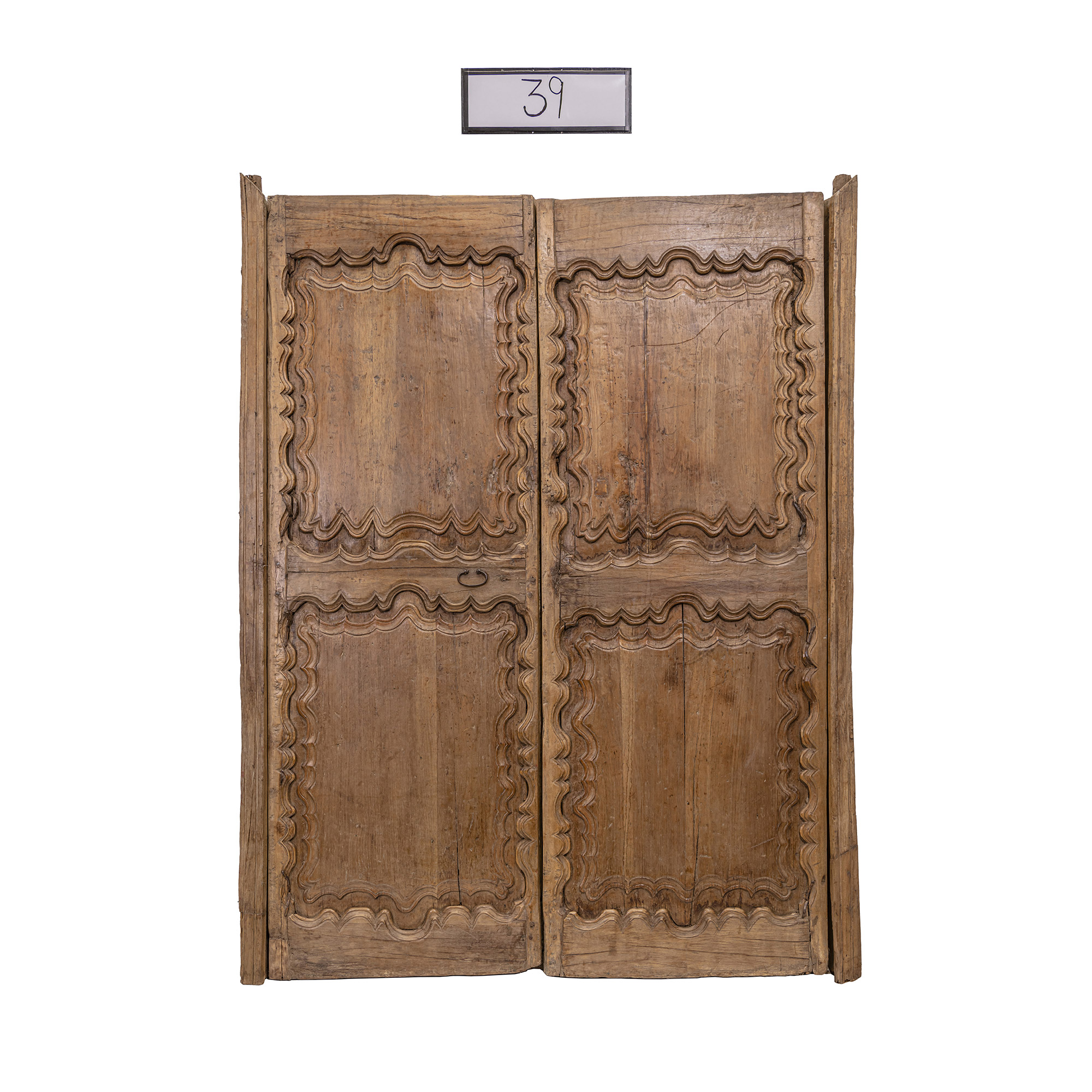 This door has panels in high and low relief and is made of Andean alder, left in its natural color. It derived from a colonial hacienda in the central Andes of Peru, specifically in the Huamanga-Ayacucho zone.
