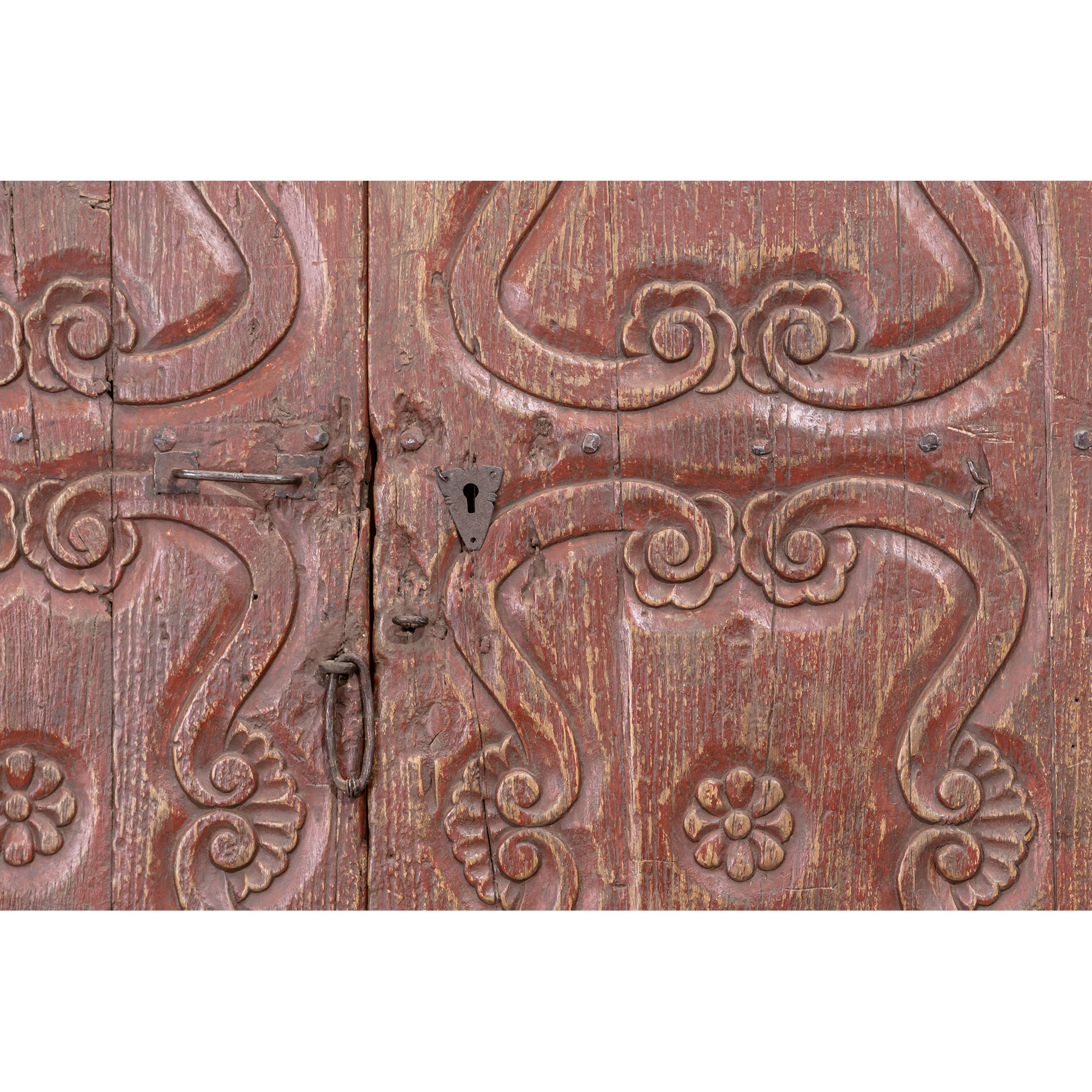 This door is made of willow wood and derives from the turn of the 19th Century. It belonged to an old colonial house in Arequipa that had been destroyed by an earthquake in 2001.
