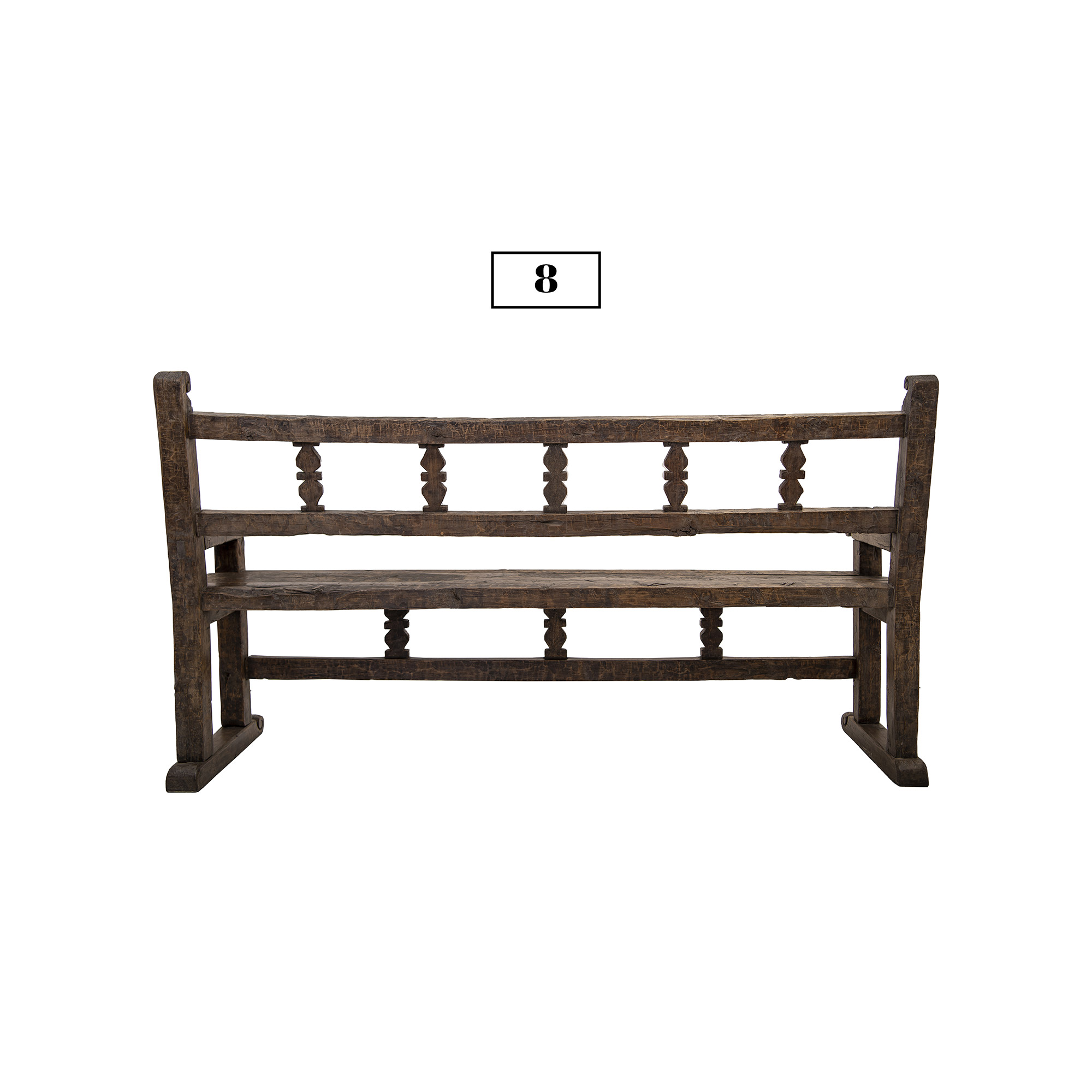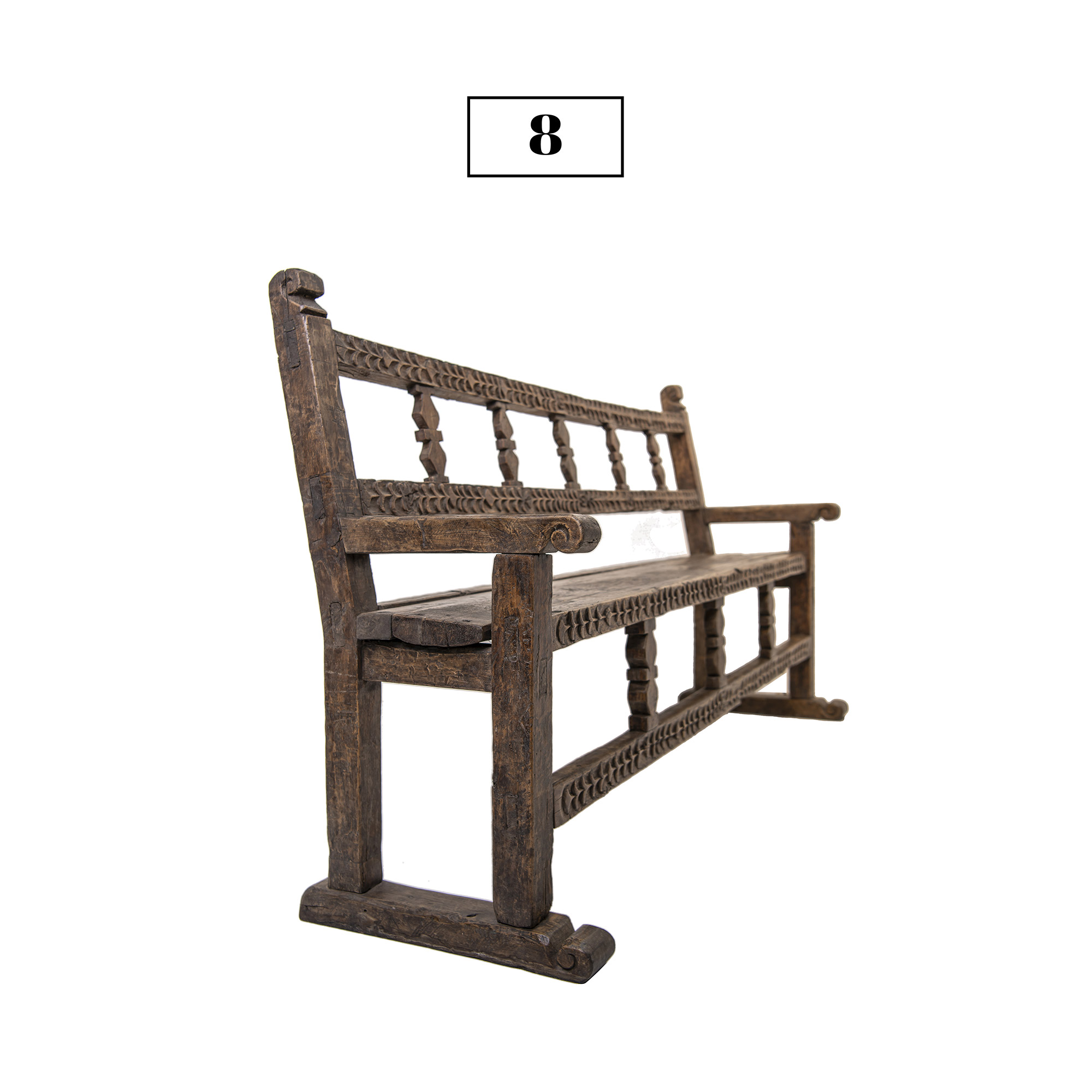Este es un escaño o banco largo de madera de sauce, con balaustros y una bella talla escamada con motivos florales, encontrada en una iglesia por la zona de Pallancata, alturas de Arequipa. Antiguedad aproximada inicios del SXIX.